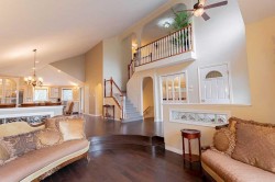 Step into this beautifully updated 2-storey split, perfectly positioned backing onto the peaceful trails of Bevans Nature Park. From the moment you walk in, you're greeted by soaring vaulted ceilings and a sun-soaked open-concept layout that seamlessly connects the living room, dining area, and kitchen. The kitchen is a chef’s dream—featuring refurbished cabinetry, stainless steel appliances, a corner pantry, and easy access to the back deck, ideal for summer BBQs. The spacious main floor primary suite offers a private retreat with a walk-in closet and 4-piece ensuite, while the nearby laundry room adds everyday convenience. Upstairs, you’ll find two generously sized bedrooms, each with their own sink area, connected by a clever Jack-and-Jill bathroom, plus a cozy reading nook overlooking the main floor. The basement is designed for entertaining, with a large games room (pool table included!), a theatre room, a stylish wet bar, and a luxurious guest bedroom paired with a beautifully renovated bathroom featuring a massive shower and dressing area. Enjoy year-round comfort with in-floor heating, air conditioning, and on-demand hot water. Additional perks include a natural gas BBQ hookup, an oversized garage, and a private hot tub oasis to unwind after a long day. This home blends modern updates with warm, inviting spaces—you won’t want to leave! *Poly-B Incentive of $15,000*