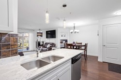 Unicorn of Garden Homes Has Landed! (2 Parking Spots!) Stop the scroll! This luxury, garden-level retreat is an immaculately adored 2-bed, 2-bath sanctuary, less condo & more charming manor. Owners performed a fairy-godmother transformation: fresh paint, sparkling new countertops in kitchen and baths, chic pendant lighting & dazzling new fixtures throughout—every detail whispers luxury. The open-concept oasis features a chef’s kitchen with a full pantry, stainless steel appliances, & ample counter space. Enjoy effortless living with a private laundry room, extra storage locker & bonus of TWO designated parking spots! Your walk-out patio is perfect for year-round whimsy. Close to UFV, shopping, parks & Highway 1, life here is effortless. Call your Realtor NOW to view this must-have home!