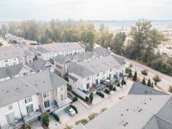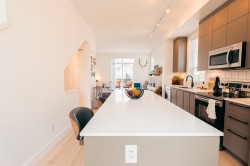 A bright 3-storey, two-bedroom, two-bath townhome designed for modern living. (1,284 sqft via Strata Plan + 414 sqft garage) Unit 13 at Gardner by Mosaic, the entry level offers a versatile den ideal for a home office. Upstairs, soaring 10-foot main-floor ceilings, oversized windows, and light finishes make theopen living space feel airy and inviting. The kitchen impresses with sleek grey cabinetry, quartz counters, stainless steel appliances, and an oversizedisland for casual meals or entertaining. Two spacious bedrooms share a stylish Jack-and-Jill bathroom. Side-by-side double garage and full-lengthdriveway — 4 PARKING SPOTS. Pet-friendly Gardner Park, with easy access to Highstreet shops and Highway 1, combines comfort, convenience, and one of the best values in the complex.