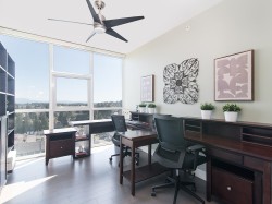 Spectacular 2 bed/2 bath view corner unit condo on 15th floor of Abbotsford's ONLY luxury concrete high-rise. The Mahogany at Mill Lake, built in 2018 offers geothermal heating/cooling + an amenities package 2nd to none including indoor pool, fitness center, hot tub, workshop, bistro, guest suites, outdoor barbecue patio & club room. This condo has stunning open concept design with elegant finishes including newly installed hardwood flooring, new electric blinds, gas fireplace, high end appliances & quartz countertops. Bathed in natural sunlight, offers beautiful views of Mt Baker, Mill Lake & Fraser Valley only steps to beautiful Mill Lake Park, trendy shops & restaurants, hospital etc. 2 parking stalls, storage locker & private deck to enjoy those morning sunrises!