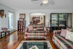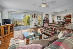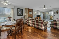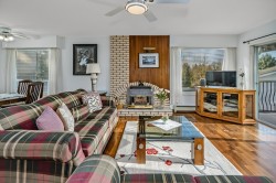 Rarely available at Laurentian Green - a niche, 10 unit 55+ complex in a prime location! A gorgeous top floor rancher style townhome w/ a stunning view of the valley + mountains! Bright and open w/ tons of natural light throughout! Kitchen has great counter space + open concept to dining and living area w/ gas fireplace! Spacious formal living room w/ large windows to soak in the view + beautiful vaulted ceiling w/ skylights allowing tons of natural light! Primary bedroom big enough for king bed + office area! Great size walk in closet + 3 pc ensuite! Large 2nd bedroom + full bathroom! Double side by side garage w/ vaulted ceiling for ample storage + stair lift! Huge 690 sqft storage/workshop below w/ heat, sink + power! Quiet location just minutes to parks, trails, shops, grocery + more!