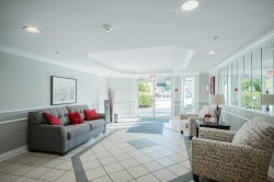Prime Location. Desirable "Centennial Court" steps away from Centennial Park, Sevenoaks shopping center, Churches and Mill Lake, Loaded with amenities from indoor pool, hot tub, steam room, exercise room, library, workshop, large meeting room with kitchen for your family gatherings, workshop and storage locker, This unit is super clean and spacious. Large ensuite shower, laundry room with extra cabinets, gas fireplace and large patio. 55+ no pets. Beautiful landscaping and low density create a park like feel.