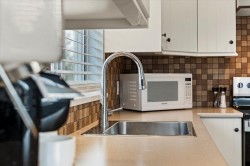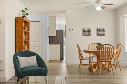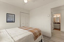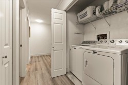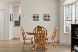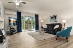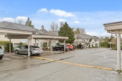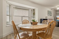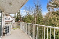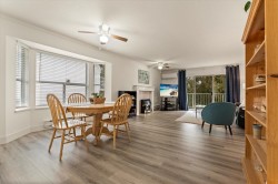 Welcome to Forest Edge! A quiet 55+ community backing onto parkland. This upper floor unit shows like new! Spacious & bright with 2 bedrooms/2 full bathrooms, gas fireplace, air conditioning, open layout living/dining area plus kitchen nook. Large primary bedroom with beautiful full ensuite. Thoughtfully updated for low-maintenance living. Updates include: flooring, baseboards/controls, appliances, heat pump with two mini-splits, updated lighting, ceiling fans, and refreshed bathrooms. Enjoy morning sun from the large east-facing balcony with forest views. Rentals allowed, one cat or dog permitted (14" at shoulders), two parking stalls (one covered). Close to shopping, parks, and recreation. Must be seen to be appreciated. Nothing to do here, but move in and enjoy! Book a showing today!