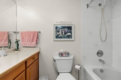 Don't miss out on this desirable location! The Oaks at Centennial Court, conveniently located near shopping, recreation & Mill Lake. This 2 bedroom/2 bathroom condo faces the courtyard and is very clean and well maintained. The layout is great with one bedroom & one bathroom on each side of the unit. This home feels open and spacious, the living room has a nice gas fireplace and access to the deck where you can enjoy your morning coffee. The laundry room has ample extra space for extra storage. The complex has fantastic amenities including an indoor pool, steam room, hot tub, fitness room, library, large meeting room and the courtyard has a great gazebo. This is 55+ living, pets are not permitted. Book a viewing today!