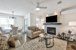 Desirable RANCHER in sought after central location. Perched up on an over 8000 sqft lot at the high point of the gated community offering excellent sun exposure and privacy. Vaulted ceilings and large windows highlight the front living room featuring custom millwork offering flexible use of the space for dining or entertaining. The Kitchen is gorgeous with Cambria countertops, gas range and large windows. This home is complete with 3 bedrooms, the primary bedroom is outfit with TWO walk-in closets and a spacious 3-piece ensuite. The outdoor terrace has a glass awning, landscape feature lighting, irrigation system & rough-ins for a hot tub. Bonus, 8x10 shed with power! Radiant in-floor heating to warm the home & brand new A/C. 2 Dogs or 2 Cats, or 1 of each allowed. RV parking available.