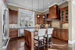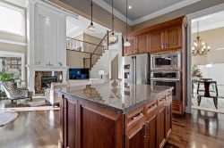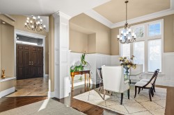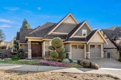 One of Eagle Mountains finest custom homes, built /occupied by a professional West Vancouver builder. Prime corner lot with MTN. & valley views, close to schools, parks & trails. Grand vaulted foyer leads to an elegant great room W/ 20' floor-to-ceiling fireplace WITH custom millwork. Chef's kitchen w/ custom cabinetry, large island, granite counters, Bosch appliances & solid 3/4 hardwood throughout the main. Primary bedroom, on main with 5 piece ensuite & 10-11ft ceilings. Daylight walk-out basement with sep. entrance, near-complete kitchen, theatre, gym, rec room & strong potential for up to 2 suites. Quality construction with rain screen, Low-E Argon windows & energy efficient design. VIEWS FROM main deck upper library, level private mature yard w/ water features lush landscaping .
