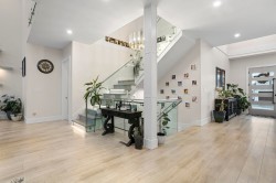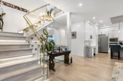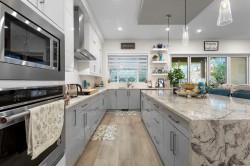 6 BED | 6 BATH | 4,366 SQ FT | 2 BED SUITE | Experience luxury living in this beautifully appointed East Abbotsford home on Montana Place. This 3-storey residence offers an open-concept main floor with a bright chef’s kitchen, quartz island, stainless appliances, full spice kitchen, and elegant living/dining areas with natural light. Upstairs are four generous bedrooms, including a stunning primary with walk-in closet, spa-inspired ensuite, and private patio with Eagle Mountain views. The lower level includes an unauthorized 2-bed suite plus theatre and office—perfect for extended family or income. Enjoy a private fenced yard with a landscaped retaining wall and natural stone accents, plus the long-term benefit of a durable metal roof. Located near top schools, parks, trails, and Hwy 1.