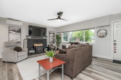Glen Valley !!! Serene peaceful Modern charm on the edge of the Valley – minutes from Abbotsford and Fort Langley. Tucked away on a quiet farm road this .37-acre property blends peaceful farmland views with a fully renovated interior. This home is move-in ready with a separate entrance to the bsmt, RV parking and stylish updated entrance. Highlights include: Quartz countertops in kitchen & bath, wood fireplace + heat pumps (4 zones), all new kitchen – appliances, cabinets, marble-topped island, new 200 amp panel, plumbing, lighting and flooring, wood-edge bar in basement rec room, roughed-in for a suite: kitchen + bathroom ready, two new decks, fire pit, upgraded yard, fresh paint & more. Roof (10–12 yrs), windows (8–10) and hot water tank (4).