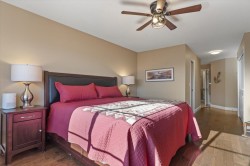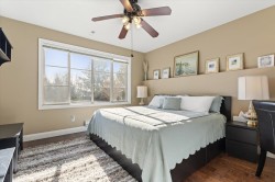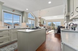Luxury executive townhome in gated Majestic Ridge. Quality, comfort & smart design features make living in this home effortless. Enjoy the ample storage and functionality of the custom kitchen in a warm muted sage tone with brushed quartz countertops. Take in the Mt. Baker, mountain & prairie views from the generous windows throughout or relaxing on one of 2 large balconies. Wood floors, soaring ceilings and 2 stone fireplaces create a warm, welcoming and bright ambience throughout the main living area. Downstairs the pristine storage room is complete with built-ins along every wall. With bedrooms, a full bath, balcony and games/rec rooms this level is perfect for guests and game nights. Organized double garage, on demand hot water, high efficiency heating system-this home is a must see.