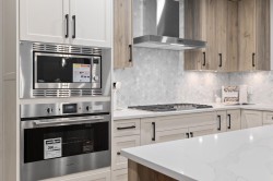 Exceptional craftsmanship and value in Abbotsford. The Aspen is one of only two homes in the boutique Silvertree collection, proudly built by Azure. This rare 6-bedroom, 4 full bathroom home offers a functional family layout with 4 bedrooms up, including a luxurious primary suite with built-in closets and a spa-inspired 5-piece ensuite featuring mosaic marble floors and walls. Enjoy hypoallergenic waterproof laminate flooring, designer fixtures, and refined finishes throughout. The chef’s kitchen impresses with an oversized island, marble backsplash, quartz counters, Maple Shaker and Eco-slab cabinetry, and premium Italian Fulgor Milano appliances. Complete with double garage, roughed-in daylit basement suite with private access, low-maintenance landscaping, and a play yard. Must be seen!