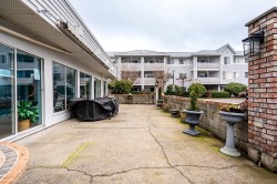 Beautifully renovated and extensively updated 2 bed, 2 bath home in the highly desirable 55+ Park Place community. Major upgrades include fresh paint, modern LED lighting, new electric fireplace, newer flooring in select areas, and a custom built in nook for added charm and function. Brand new backsplash in the kitchen and bathrooms creates a cohesive, stylish feel. Bright living and dining areas open to a peaceful raised balcony, perfect for morning coffee. Spacious primary features accent wall, updated vanity and faucet, walk in closet, and refreshed 3 piece ensuite with glass shower. Dedicated office space offers flexibility. New washer, secure parking, locker, indoor pool, hot tub, sauna, guest suite, steps to Sevenoaks and Mill Lake. Truly move in ready.