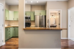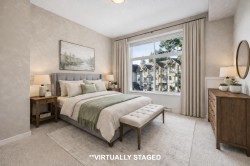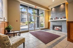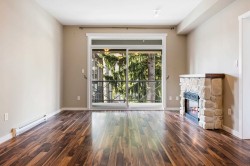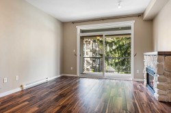 Beautifully UPDATED 2 BED, 1 BATH Condo 800+ sqft with a bright sunny open floorplan, large windows & 9’ CEILINGS in a gated, pet & family-friendly complex nature-filled with lush greenery and peaceful surroundings. UPDATED KITCHEN opens to the dining and living area w/ cozy FIREPLACE and access to a LARGE COVERED BALCONY w/ sunset views. Big primary bedroom has a W/I CLOSET w/ organizers & cheater ENSUITE. Second bedroom is great for guests, kids or as an office. Walk to Ravine Park and minutes to Mill Lake, Sevenoaks, transit, schools, Abbotsford Hospital and Hwy 1. Includes secure EV-ready UNDERGROUND PARKING, IN-SUITE LAUNDRY ROOM w/ storage, LARGE LOCKER, BIKE STORAGE and option to rent 2nd stall. Unit only shares one wall. Clubhouse, guest suite & onsite caretaker in the building.