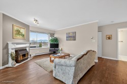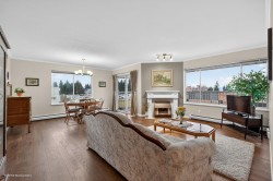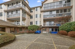 Location, location, location! You can do renos but you can’t change the view or location. This 1234 sqft TOP FLOOR CORNER unit across the street from Mill Lake offers a spectacular view of the mountains in Golden Ears Provincial Park. Plenty of natural light from the skylight and unobstructed views from the north facing windows. Enjoy the many updates, the bright open kit and spacious living & dining area. A well cared for home that is move in ready with in suite laundry, upright freezer, huge pantry, gas F.P., and locker down the hall. This well run 55+ building offers a lounge, rec rm w/kit , gym & workshop, so there’s lots to do. Join the weekly social gatherings or puzzling in the lounge or have a friend stay over in the guest suite. Steps to Seven Oaks & West Oaks Mall and more shops.