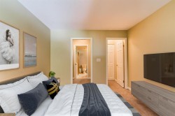 Welcome to The Seasons - the best location in Abbotsford! This stylish and affordable corner condo is perfect for first-time buyers or investors. Thoughtfully designed with 2 bedrooms on opposite ends for privacy, including a walk-through closet to ensuite. The open floor plan offers a bright, spacious living and dining area with plenty of natural light. Large pantry off kitchen with tons of space. Bonus is a lovely balcony to sit and relax. Enjoy tranquil, park-like grounds with arbours and a peaceful water fountain. Walk to shops and restaurants. The building features new balconies, doors, windows, and paint. Pet and rental friendly. Includes 1 parking, 1 storage locker, fitness room, rec room, visitor parking, and heat & hot water included in a maintenance fees.