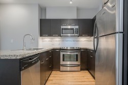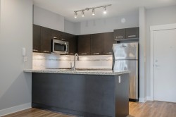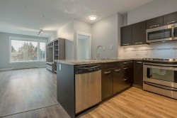 THE CROSSING! Welcome to this beautifully renovated 2 bedroom/2 bathroom condo with nearly 1000sq ft of living space in one of Abbotsford's most desirable developments! This stunning south-facing unit boasts an abundance of natural light. Featuring NEW flooring in the kitchen/living room, Fresh Paint, and Custom Closet Organizer in the master bedroom. Enjoy the convenience of 1 underground parking stall and a large storage unit. Take advantage of the fantastic building amenities including a gym, amenities room, and office space. You'll love the location being only 1-minute drive to Highway 1, a 5-minute drive to UFV and Mill Lake Park, and walking distance to all amenities, including shopping, dining, parks, and entertainment. Make this stunning condo yours today!