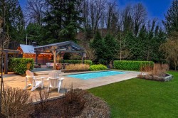 Coach home permitted and no floor space restriction - offering exceptional long-term value in a premier location. SuCasa renovation on a private 1-acre estate on one of Abbotsford’s most desirable streets, not in the ALR and under 5 minutes to trails, MEI, and highway access. South-facing with mountain views, manicured grounds, pool, pergola with overhead heat, firepit, and tranquil fountain. Fully updated with new electrical, plumbing, insulation, furnace, A/C, and instant hot water. Thoughtfully redesigned with vaulted great room addition, abundant natural light, custom cabinetry, stone surfaces, and artisan millwork throughout. Heated 18’x18’ workshop/poolhouse with conversion potential. Full YouTube narrated tour available.