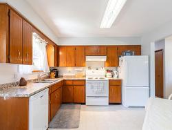 Perfect family starter w/3 large bdrms up & 3 bthrms incl ensuite off Primary bdrm. Finished basement for gathering , company or potential mother-in-law suite. Wood burning fireplace up & gas fireplace down for those cozy days. With All of the big updates done incl; NEW windows, NEW doors, NEW furnace WITH central A/C, NEW hot water tank and NEW roof, this home is worry free to move into! Great safe family neighborhood with street light at the end of the drive way for added security in mind. Close to all schools, shopping, parks & the bus stop is right in front. BBQ season all year round on your NEW covered deck overlooking the private-fenced back yard oasis. Stretch the power of your mortgage dollars in this desirable neighborhood.