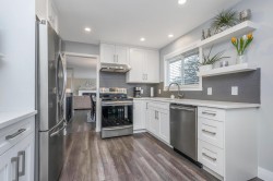 A beautifully updated, well maintained family home in East Abbotsford's desired 'McMillan' neighbourhood. Walking distance to all 3 levels of schools in a great catchment. This home has it all, boasting over 1500 sq ft on the main floor featuring 3 spacious bedrooms, a living room with designer electric fireplace feature, a completely remodelled kitchen AND a cozy family room! Downstairs features the 4th bedroom and huge recroom. Additional upgrades to the home include: flooring throughout and a new natural gas furnace & A/C system. What sets this home apart from others in the neighbrouhood is the flat and private south facing back yard, a 4 car driveway leading to the oversized double garage with bonus storage space, and the epic sunsets enjoyed from the main floor's large windows.
