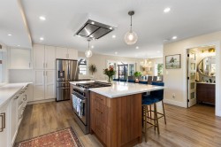 Nestled on one of East Abbotsford’s most coveted streets, this stunning two-story with a walkout basement sits on a half-acre of lush, private greenery. The main floor was renovated in 2020, featuring a chef-inspired kitchen with large island, gas range, LVP floors, 4 season sunroom and a show-stopping entertainer’s bar. Upstairs, you’ll find three spacious bedrooms plus a bright office, ideal for work-from-home living or growing families. Downstairs, the daylight basement offers incredible flexibility with a 1 bedroom + den in-law suite, and additional large rec-room. Step outside to enjoy a shared tennis court that could easily be transformed into a pickle ball or hockey court, surrounded by mature landscaping that ensures total privacy. This is more than a home—it’s a lifestyle.