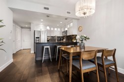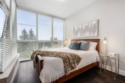 East-facing condo in Mahogany at Mill Lake! Enjoy breathtaking views of Mt. Baker and Mill Lake through floor-to-ceiling windows that flood the home with natural light. This 2-bedroom, 2-bath residence features geothermal heating and cooling, engineered hardwood flooring, heated tile bathroom floors, high-end fixtures, a gas fireplace, and a spa-inspired ensuite with a rain shower. Mahogany offers resort-style amenities including an indoor pool, hot tub, fitness centre, bistro, workshop, outdoor BBQ area, car wash, and 2 guest suites. Just steps to shopping, dining, and Abbotsford Regional Hospital, this home combines luxury living with unbeatable convenience.