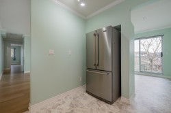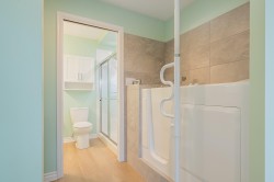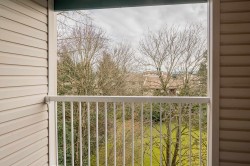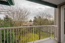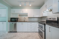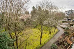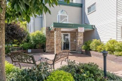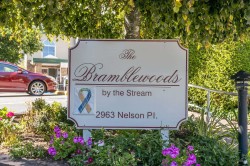 Welcome to Bramblewoods, a sought-after 55+ community. This top-floor corner unit spans approximately 1,350 sq ft and is thoughtfully designed with 2 bedrooms and 2 bathrooms, surrounded by lush gardens, green space, and scenic walking trails. Enjoy your morning coffee on the balcony as nature becomes part of your everyday routine, or take advantage of the welcoming, close-knit atmosphere, home to many long-time owners who truly value this tranquil setting. This move-in-ready home features a spacious open living and dining area, a generous primary bedroom with ensuite, in-suite laundry, and ample storage throughout. All the conveniences you need are just steps away. Walk to shopping, restaurants and recreation. Some rooms have been virtually staged.