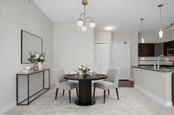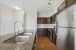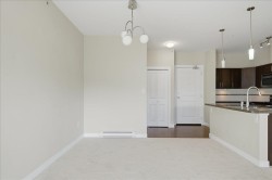 Welcome to The Gallantree, where modern comfort meets unbeatable convenience! This bright and spacious 1-bedroom, 1-bathroom condo offers 740 sqft of thoughtfully designed living space. Situated on the quiet side of the building, the unit boasts a functional open layout with 9’ ft ceilings, sleek laminate flooring, NEW carpet, S/S appliances, granite counter tops, centre island, large walk-in closet & spacious laundry with extra storage. Enjoy the outdoors on your covered patio, perfect for relaxing or entertaining. This family friendly building allows rentals & pets. Includes 2 Parking Stalls & Storage! Conveniently located just minutes from historic Downtown Abbotsford, this west-facing unit offers easy access to major routes, an array of shops, dining & entertainment. Ready to Move In!