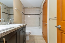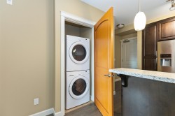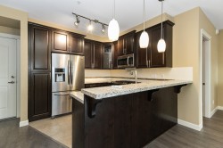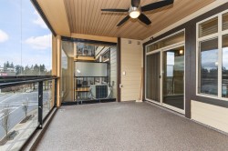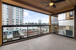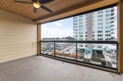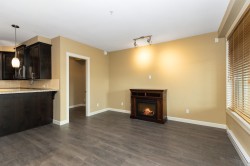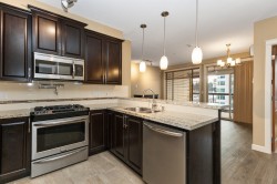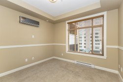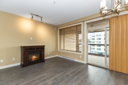Highly sought after "La Galleria" condo in Abbotsford, immediate possession! Awesome location within walking distance to grocery store, shopping, restaurants, public library & more. 4th floor south facing, 1 bed & den, stainless steel appliances, granite countertops, REAL wood paneled cabinetry, central A/C, elec F/P. Also includes a large 219 sq ft retractable glass solarium with natural gas outlet for bbq; perfect for year round entertaining. 2 underground parking stalls, large storage locker, on site gym. 2 pets allowed 20" at shoulder. Don't miss out!