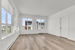 Top-Floor Corner Gem at Highstreet Village! This brand-new CORNER 5th-floor 2-bed, 2-bath home puts you above it all in Abbotsford’s most talked-about new community. With windows wrapping around the living and kitchen area, you’ll love the bright, open feel every day. The modern kitchen shines with stainless steel appliances, a gas stove, touchscreen fridge, quartz counters, and a big island with sink—perfect for cooking and entertaining. The funcitonal layout offers bedroom separation for privacy and wide plank floors for style. Step out to your covered balcony for fresh air and an open view. Comes with parking, storage, and access to awesome amenities like a gym and party room. Walk to shopping, dining, and be on Highway 1 in minutes. Move-in ready with quick possession available!