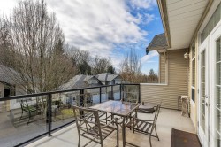 EAST ABBOTSFORD'S Gated Community of KINGS GATE. Nestled amongst the trees in a peaceful private, secure setting. This unit offers 4 large bedrooms and 3 full bathrooms. The massive open concept living room, dining and kitchen are perfect for entertaining or family living. The great room has a stone face fireplace and new laminate floors throughout. The front and back private decks and patio are an extension of the living area. All appls have been replaced. The downstair boost a huge recreation room perfect for watching sports or playing pool. Large Double garage. Central A/C. This complex is located just steps to Ledgeview Golf Course, walking and biking trails. Excellent freeway access going both east or west. No age restrictions and pets are permitted with restrictions.