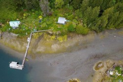 Escape to your own sunny, south-facing, oceanfront retreat in the serene waters of Grappler Inlet, Bamfield. Accessible by boat and situated on 1.2 acres, this charming 2004-built Pacific Homes cottage offers the perfect blend of comfort and adventure. The property features a shared dock with a boathouse, and enjoys full solar readiness for sustainable living. Inside, you’ll find 2 cozy bedrooms, 1 full bath, and an open-concept living and kitchen area with soaring vaulted ceilings. A large covered deck offers stunning views of Port Desire—perfect for relaxing or entertaining. The cottage comfortably sleeps seven with a queen bed in the primary room, a double bed plus two bunks in the guest room, and a fun kids’ loft above the kitchen. Fully serviced and ready for year-round use, the home includes a 200-amp BC Hydro panel, Telus and Starlink internet, and a roof-mounted cell signal booster.