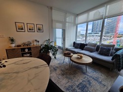 Wake up to beautiful mountain and city views from this exceptional 1 Bed + Den suite at Alpha at Lumina, perfectly situated in Brentwood's core. Step into a sleek, chef-ready kitchen featuring a premium Miele appliance package, gas cooking, and elegant quartz counters. Enjoy year-round comfort thanks to in-suite A/C. The building is fully loaded with premium amenities including concierge service, a fully equipped gym, exclusive outdoor greenspace, and convenient EV charging. The location is unbeatable: you're steps from the revamped Brentwood Mall and just a short stroll to the Skytrain, Costco, Whole Foods, and endless dining choices.