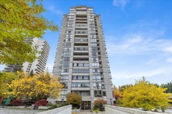 INCREDIBLE LOCATION and VIEWS! Located a short walk from Lougheed Mall, the skytrain, schools and tons of restaurants this spacious south facing 2 bedroom condo has been beautifully renovated. New kitchen, baths, flooring, appliances, paint and blinds - this is move in ready! Enjoy phenomenal panoramic city views from this stunning unit. Complex features a seasonal outdoor swimming pool, sauna, party room with kitchen, guest suite, hobby room, bike room and gardens. In-suite laundry, plenty of closet space (with a great walk through closet in the primary bedroom) Comes with parking and storage. Strata fee includes heat and hot water. Sorry, no dogs or cats but 2 small caged birds or fish welcome. Great value in a convenient location!