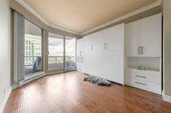 Calm, Pride, Simplicity and Rarity. The Calm of landscaped gardens, the Pride of living in a home designed by world-renowned architect Arthur Erickson. The Simplicity of walking to transit, schools, parks & shops, & the Rare blend of luxury, location & lifestyle. Welcome to the Savoy Carlton in the award-winning City in the Park community. This bright 2bed, 2bth home offers open-concept living from kitchen to living rm, built-in king wall bed in the primary bdrm, Murphy bed w/desk in second bdrm, and a huge balcony with expansive views (sunsets and Mt. Baker). This lovely home incl parking & storage. Enjoy indoor saltwater pool w/wrap around patio, gym, sauna, theatre, billiards, library, party rm, formal gardens. No presentation of offers until Mar 4/26 at 3pm. O/H Fri 4-6, Sat/Sun 2-4pm