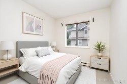 Tucked away in a quiet, well-kept complex! This bright 3 bed, 2.5 bath townhome offers 1,375 sqft across 3 levels—perfect for young families. The top floor is a private primary retreat with walk-in closet, ensuite, and covered balcony. Two bedrooms, full bath, and laundry on the second floor. The main level features a separate kitchen and sunlit living room with gas fireplace, opening to a South-facing fenced private Patio. Quiet, well-maintained complex just 2 blocks from Edmonds Skytrain, and minutes to schools, parks, and shopping. Includes 1 parking and 1 storage locker. A rare opportunity in a family-friendly community!