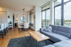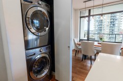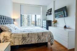 Welcome to OMA 1 in the heart of Brentwood Park! This beautifully updated 2 Bed + 2 Bath northeast corner home offers bright, open living with 9’ ceilings, modern hardwood floors, fresh designer paint, quartz countertops, and a premium Fisher & Paykel appliance package. Enjoy sweeping city and mountain views from expansive windows and your private 80 sq ft balcony. Includes TWO parking stalls and TWO storage lockers. OMA features resort-style amenities: indoor pool, hot tub, sauna, gym, and rooftop garden. Steps to Gilmore SkyTrain and Whole Foods. AC installation is permitted with strata approval. Immaculate and move-in ready! Without a doubt one of the best 2 bed properties with 2 parking in all of Brentwood under 700k!