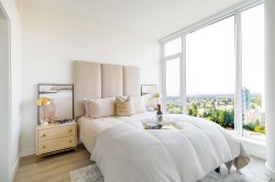 Step into this thoughtfully designed 2-bedroom home where the entry opens into an oversized kitchen with ample storage and a dedicated dining area, perfect for hosting. The well-separated bedrooms offer balance and privacy, each featuring large closets and expansive windows. A generous balcony provides the ideal spot to enjoy morning coffee and sunrise views. Residents benefit from curated amenities including a Concierge, Guest Suites, Fitness Centre, Social Lounge, and Outdoor Terrace. Located steps from the vibrant shopping, dining, and entertainment of Metrotown, as well as the convenience of 2 SkyTrain stations, Riviera is the perfect combination of luxury and urban living. Quality built by Ledingham McAllister, BC's original home builder.