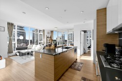 SW-facing 19th-floor CORNER 2 Bed + 2 Bath at Station Square with bright open outlook and floor-to-ceiling windows. Functional layout with upgraded laminate flooring in both Bedrooms, highend appliances, soft-close cabinetry, quartz counters, spa-inspired baths, ample storage, and spacious balcony. RARE bonus: TWO parking stalls—hard to find in this prime Metrotown location. Full amenities incl. gym, yoga, lounge w/ kitchen, rooftop terrace, BBQ, playground, guest suite, 24/7 concierge & more. Steps to Metropolis, SkyTrain, Central Park, groceries, restaurants & services. MOVE-IN READY!