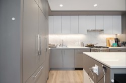 KIN Collection by Beedie – a stylish 2-bedroom + nook + 3 bath+ 400sf rooftop patio townhome in Metrotown’s Royal Oak area. This elegant home boasts a modern open-concept kitchen with Fisher & Paykel appliances, a gas stove, and natural wood accents. The functional layout two bedrooms on upper level, including a spacious primary suite and a beautifully finished ensuite, a nook space ideal for a home office or more pantry, and comes with one EV ready parking + storage. Enjoy an oversized laundry room with plenty of storage. Rooftop deck with panoramic view. Amenities: outdoor bbq area, gym, yoga studio and a party room with bar and outdoor table tennis and patio for entertainment. Steps to Royal Oak Station, shops and restaurants on Kingsway + Metrotown. OH JUL 20 (Sun) 2:30-4PM