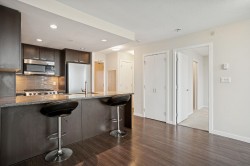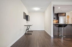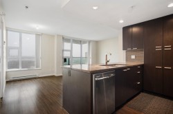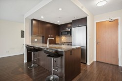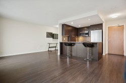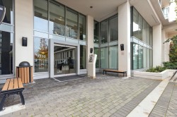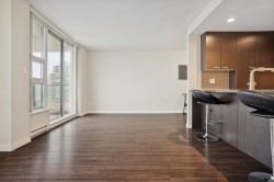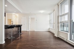 Welcome to Affinity II by BOSA, offering quality construction and exceptional convenience. This bright, well-maintained south-facing 1-bedroom plus large den features an open-concept layout designed for modern living. The versatile den is ideal for a home office. The gourmet kitchen is appointed with granite countertops, gas cooktop, and stainless steel appliances. Building amenities include a fully equipped fitness centre, party room, guest suite, and landscaped garden terrace with ample green space. Prime location steps to SkyTrain, Brentwood Mall, shopping, dining, and more. OPEN HOUSE: Feb 14th & 15th, 2-4PM