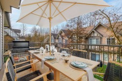 Chancery Lane built by an excellent, well-known, experienced builder Ledingham McAllister! Quiet interior location within the complex, close to visitor parking! Lots of exterior square footage: 14'8 x 10'7 covered patio & 15'3 x 8'1 deck off of the kitchen/eating area! Garage includes a 14'3 x 8'11 built-in workshop due to the extra length of the garage! 9'ceilings & powder room on the main floor which a lot of townhomes in the area do not have. Large primary bedroom. Total square footage when including the deck, workshop, patio and interior living space is 2,099 square feet! Walking distance to greenbelt/trails. Very central area w/easy access to Hwy 1. Lougheed Hwy & Canada Way. 5 minute drive to Lougheed Mall & skytrain. Close to elementary/secondary schools & bus transit.