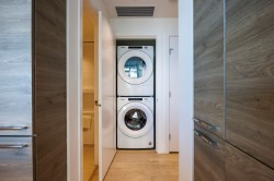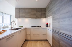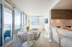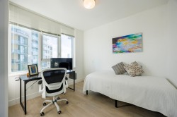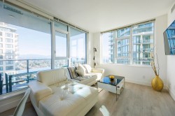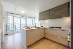 Two-bed, two-bath unit at King Crossing II! This impeccably maintained residence offers a perfect blend of functional design and breathtaking views in the heart of the vibrant Edmonds community. The revolutionary Cressey Kitchen offers the most intelligent use of space on the market today. Luxurious finishings throughout include A/C, overheight ceilings, spacious bedrooms, Blomberg double fridge, Fulgor gas cooktop, premium stone countertops, and tons of smart storage. spa-like bathrooms. Large windows and a spacious balcony provide stunning, unobstructed views and plenty of natural light. Amenities include a fitness facility, gym, squash, steam, sauna, and lounge. Perfect location within walking distance to shops, restaurants, and Edmonds Skytrain Stn.