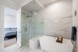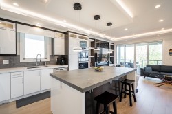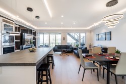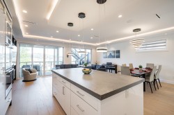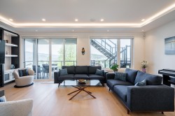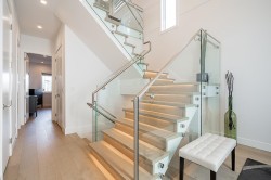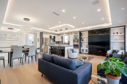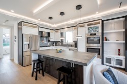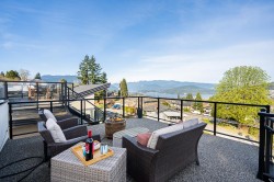 Exceptional 6 bed, 6 full bath home offers breathtaking views of Mt Baker & Burrard Inlet from 3 levels. Chef’s kitchen boasts premium Bosch appliances, double wall oven, oversized island & ample cabinetry. Enjoy seamless indoor/outdoor living w/a covered deck(gas BBQ/heater hookups) & rooftop patio w/gas fire pit hookup & sweeping water & mountain VIEWS! The luxurious primary suite feat a spa-inspired ensuite w/dual vanity, oversized rain shower & deep soaker tub. Smart home feat inc Control4 automation, A/C, radiant heating, smart thermostats, video security, and b/i central vac. The lower level incl a spacious family rm, flex space w/separate entrance, and a newer legal 2 bed suite complete w/kitch & laundry,ideal for rental or extended family. Bonus EV level 2 charging! Shows like NEW!