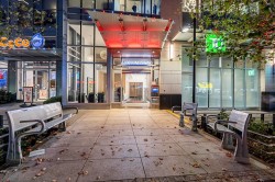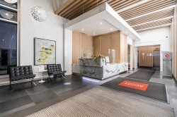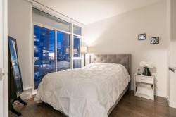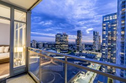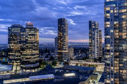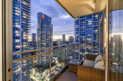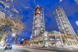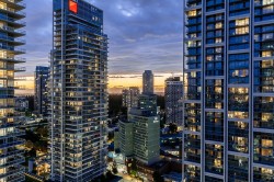 LUXURY CONDO WITH AMAZING VIEWS - INVESTMENT OPPORTUNITY Located just steps away from Metrotown and the Metrotown skytrain station, this 1 bed/1 bath with an office nook is perched high on the 29th floor, showcasing stunning south-eastern views with breathtaking sunsets from both inside the suite and your covered balcony. Inside, enjoy elegant finishes such as hardwood flooring, stainless steel appliances including a gas stovetop, and electronic blinds. Currently tenanted at $3,275 monthly, on a month-to-month lease, and fully furnished with option to include all furniture with purchase. Building amenities include: gym & guest suite. Parking/locker included. A fantastic opportunity & ideal location for both investment & personal living. Showings by appointment. Call to view