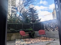 It's a GEM Concrete building by Bosa, 1st time buyer's special better than rent! Cute and Extremely functional layout potential to convert the unit to a Jr. bedroom (a divider slider already been installed) suite w/lots of privacy. Brand new high end German laminate wood flooring and freshly painted wall just move right in. Low strata insurance deductible $50k & mgnt. fees approx. $182/month including Hot water and Gas stove. 1 parking 1 locker and 6 lvl 2 EV spots charges $1.25/hr. Guest suite $65/night, gym and party room. Unit comes w/ approx 150 s.f. extra private outdoor patio good for bbq and same lvl could go out private gardening with pet walk. Mins. away to Holdom Skytrain, Brentwood Mall, Save on Foods, Wholefoods and Future TnT will be opening v. soon.
