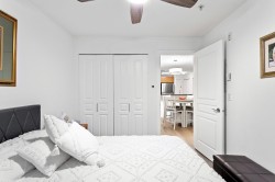 WALK OUT YOUR DOOR to Shopping of All Levels, Lougheed Mall, Walmart & a short walk to skytrain/bus loop, Hwy access & closeby SFU University! BEAUTIFUL 2 BEDROOM & DEN, 2 BATHROOMS with a Great Unique layout featuring a Huge Primary Bedroom with flex/den space overlooking private mature greenery! Newer appliances & laminate flooring, insuite laundry, storage locker & parking.Step out your door to the upcoming Future State of the Art Facility Cameron Community Centre w/Pool,Gym,Library & more! Location offers Convenience At Its Best!