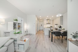 Welcome to this bright and inviting two-bedroom home at Cedar Creek by Ledingham McAllister in the heart of Edmonds, Burnaby. Designed with young families in mind, this home offers 9’ ceilings and a smart open layout that feels spacious yet cozy. The modern kitchen with a large island is perfect for everyday meals and gathering together. The living and dining area opens onto a private balcony with a quiet, open view — a lovely space to relax. Complete with stainless steel appliances, front-loading washer and dryer, and window blinds. Pet-friendly building (with restrictions) and no short-term rentals allowed for added peace of mind. Just a couple of minutes’ walk to Stride Elementary — a wonderful place to call home and grow together. Open House Sat 2/21 12-2pm & Sun 2/22 2-4pm.