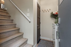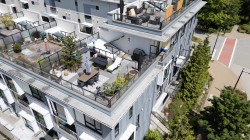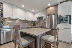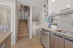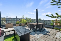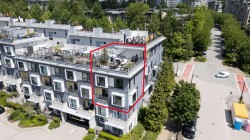 Welcome to The Lift, the largest 3 Bdrm SkyHome in the complex. This end unit has over 1400 sqft w/lots of upgrades incl. new carpets, HW floors, new high end interior Fir doors with nickel levers, pot lights, cordless shades, 3M Window film, new Samsung Gas stove & cooktop, closet/organizers + much more. Entertain, BBQ & suntan on your own private 529 sqft rooftop deck Oasis with gorgeous views to the Ocean, Van. Island, Mt. Baker, Greenbelt & more. This 2 level 3 bdrm, 3 full baths has it all. Show and sell!.