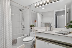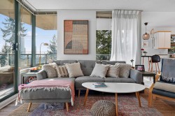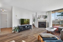 SE corner suite in The Dunhill! This spacious 2 bedroom, 2 full bathroom home offers an exceptional layout featuring laminate flooring, a cozy gas fireplace, updated appliances in 2022 and a large formal dining area perfect for entertaining. Floor-to-ceiling windows fill the space with natural light. Step onto the covered wrap-around balcony and enjoy panoramic views year-round. Includes in-suite laundry and storage plus a storage locker. Great location steps to Edmonds Station & Highgate Village. OPEN: Sat. Feb. 21st 2:00 - 4:00PM