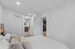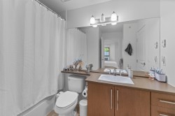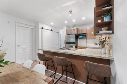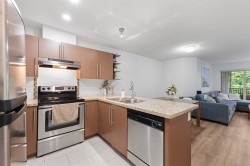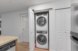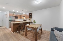 Top floor 1 bedroom + den at Memento in Brentwood. This bright, very well-kept home features an open layout with a spacious kitchen, granite counters, stainless steel appliances, and an eat-up bar. The living room offers an electric fireplace and access to a covered balcony. The bedroom includes a walk-in closet and cheater ensuite, plus a versatile den for office or storage. Includes parking, storage locker, and access to shared EV charging. Walk to SkyTrain, Brentwood Mall, schools, and parks—ideal for first-time buyers or investors.