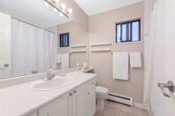 Boutique townhome—bright, open 4 bed, 4 bath with 1,900+ sq ft of flexible family living. Oversized welcoming foyer, eat-in kitchen, and spacious living/dining with cozy gas fireplace creates a warm, stylish setting for everyday life, comfort and entertaining. Private fenced backyard with shed for bikes, tools and toys—perfect for gatherings and play. Brand new carpets throughout—move-in ready. Upper level offers 3 bedrooms, full bath, and primary with walk-in closet & full ensuite. Bright finished basement with rec room, guest/den, laundry, furnace and half bath. Carport plus additional low-cost parking available. Steps to community centre with pool, sauna & fitness room. Minutes to BCIT, Brentwood, Metrotwn. No presentation of offers until Feb 25, 2026 at 5pm. O/H Thur 4-6, Sat/Sun 2-4pm